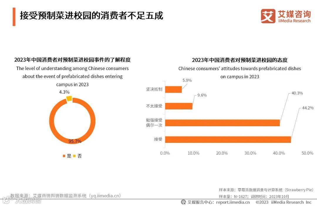 接受预制菜进校园的消费者不足五成