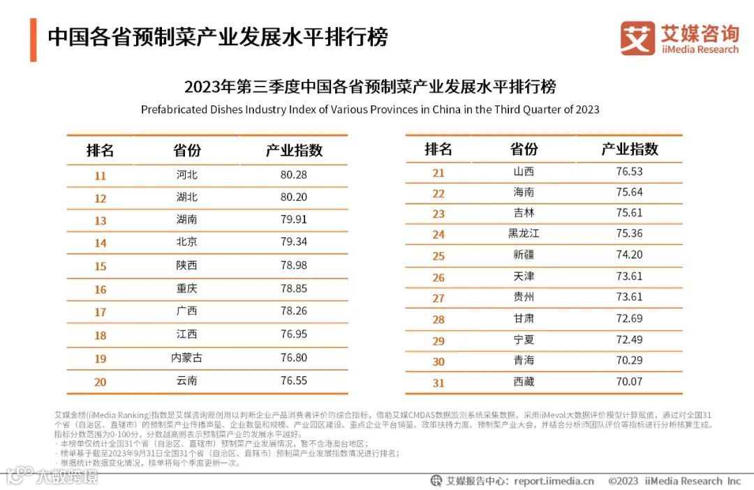 中国各省预制菜产业发展水平排行榜(二)