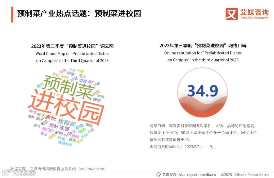图表13. 2023年第三季度“预制菜进校园”网络口碑