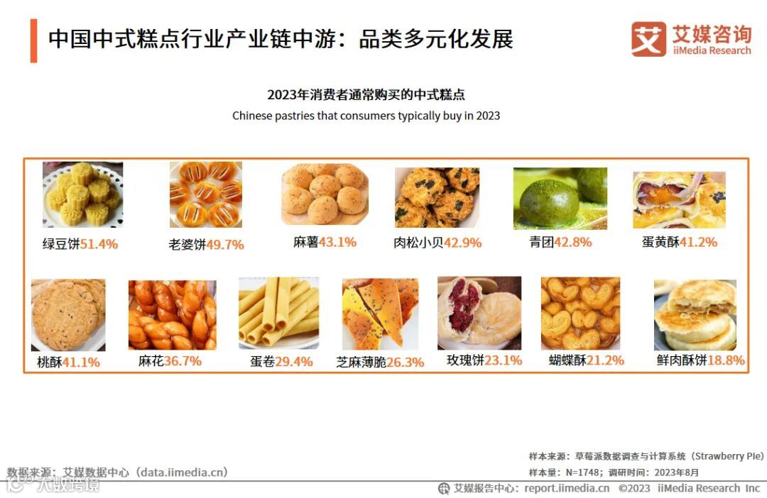 馅饼类、月饼类、糕点类为消费者偏爱的中式糕点类型