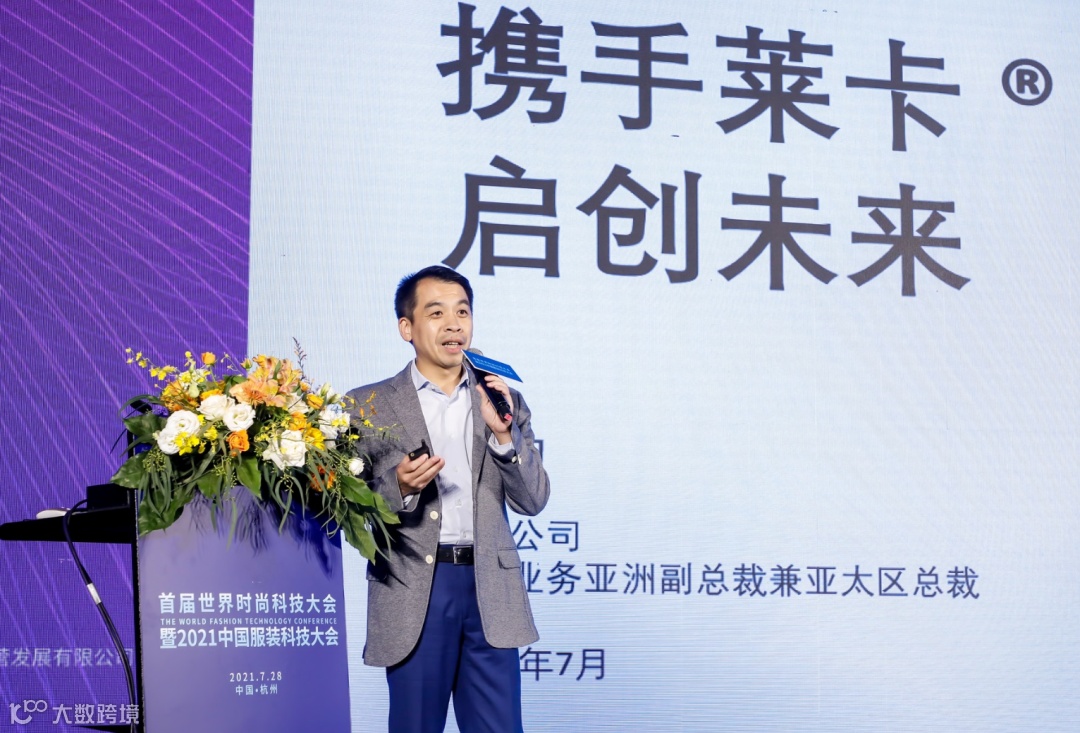 莱卡公司服饰业务亚洲副总裁胡焱钧为大家讲解了“弹性功能创新在服饰上的新应用”。他重点介绍了莱卡在合身科学、可持续发展方面的新技术。
