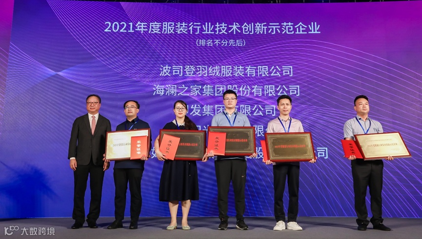 会议公布了2021年度中国服装行业技术创新示范企业及入围企业10家、2021年度中国服装行业科技进步奖18项、中国服装专利奖13项,并进行颁奖。会议还发布了《2021年度服装行业用优秀新技术成果及解决方案推荐目录》22项。