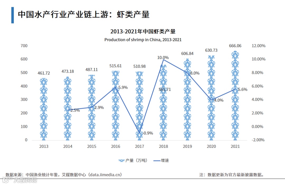 中国水产行业产业链上游:虾类产量