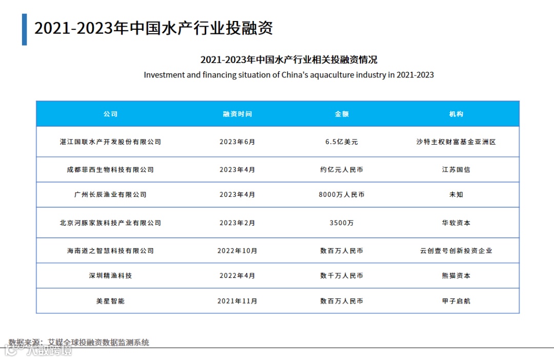 2021-2023年中国水产行业投融资