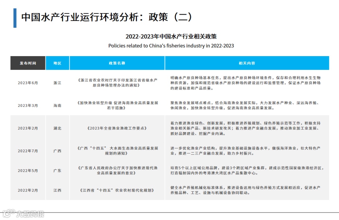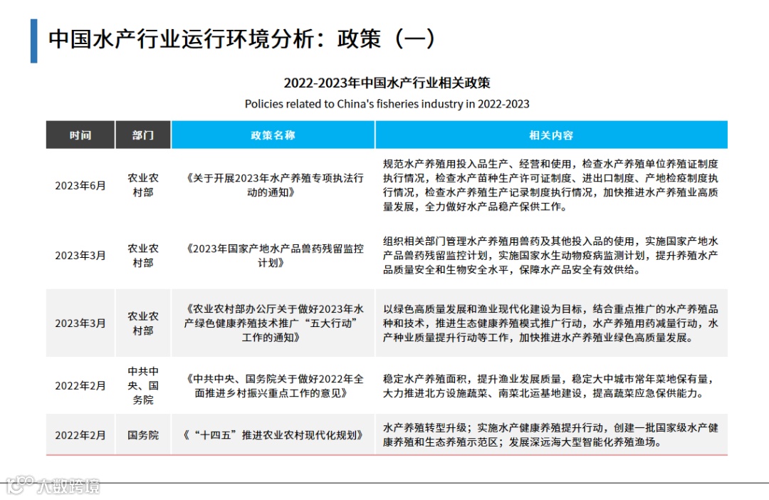 1.2022-2023年中国水产行业相关政策