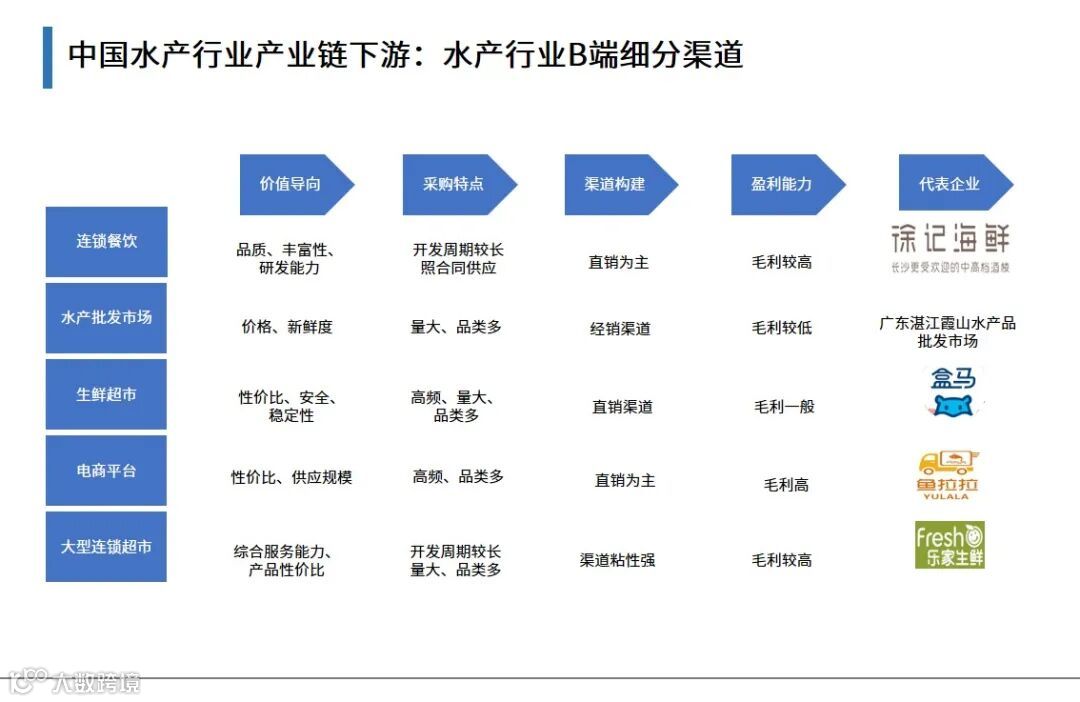 中国水产行业产业链下游:水产行业B端细分渠道