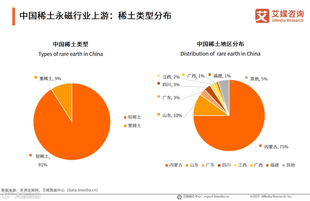 中国稀土永磁行业上游:稀土类型分布