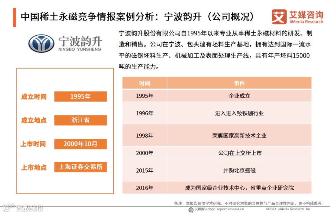 中国稀土永磁竞争情报案例分析:宁波韵升(公司概况)