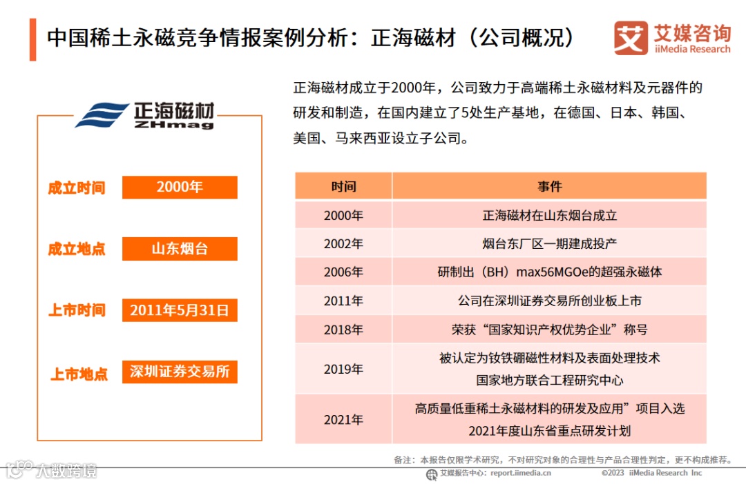 中国稀土永磁竞争情报案例分析:正海磁材(公司概况)