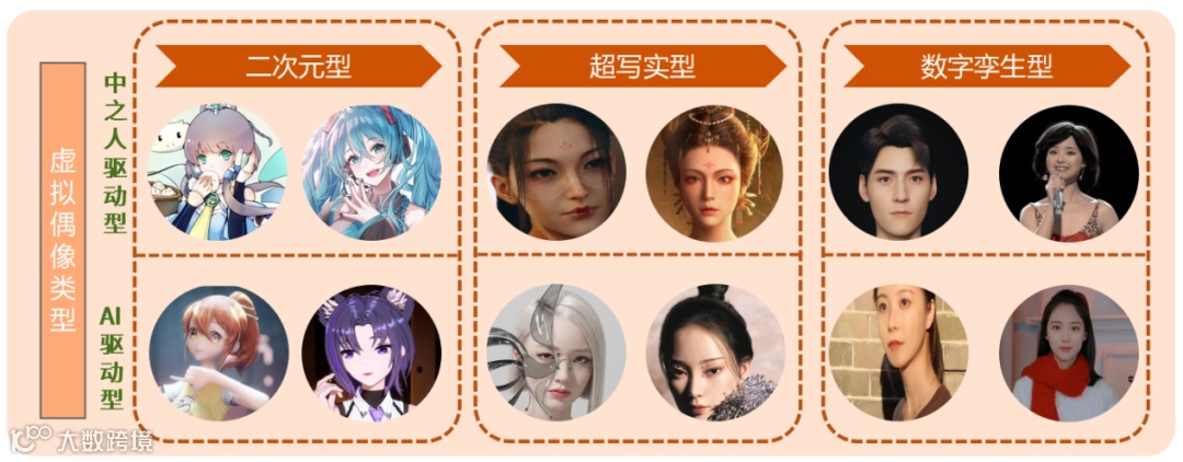虚拟偶像指的是通过绘画、动画、CG等形式制作,并赋予专属的人设、声音、性格,依托网络等虚拟场景或现实场景进行各类活动的人物形象。根据视觉风格可分为二次元型、超写实型和数字孪生型三种类型。按照驱动方式分类则可以分为虚拟形象和音频均以人工智能合成的AI驱动型和借助捕捉技术,对中之人进行语音、动作、面部捕捉后合成的中之人驱动型。虚拟偶像市场不断发展,越来越多的不同类型的虚拟人面世,商业价值不断被开发。