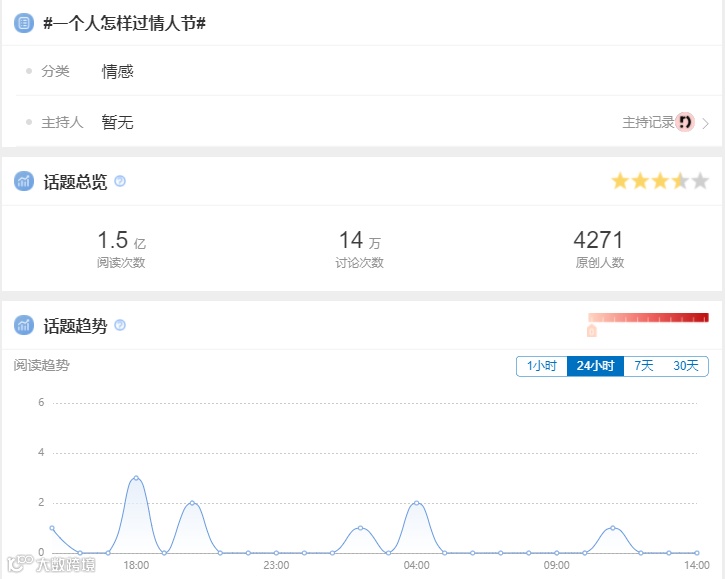 情人节期间,“一个人怎样过情人节”、“给自己送礼物”等话题在微博、小红书等社交媒体成为热点,单身人士也成为情人节的新消费群体,没有家庭的负担,他们选择把更多的时间和金钱放在提升自己与培养自己的兴趣爱好上。
