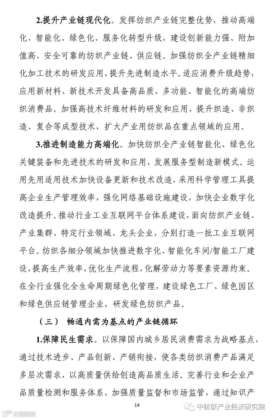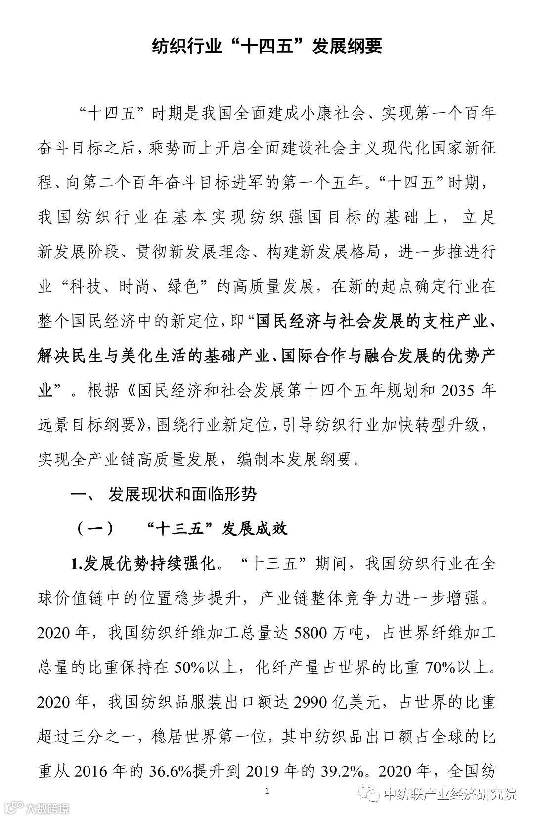 导读:《纺织行业“十四五”发展纲要》全文发布!