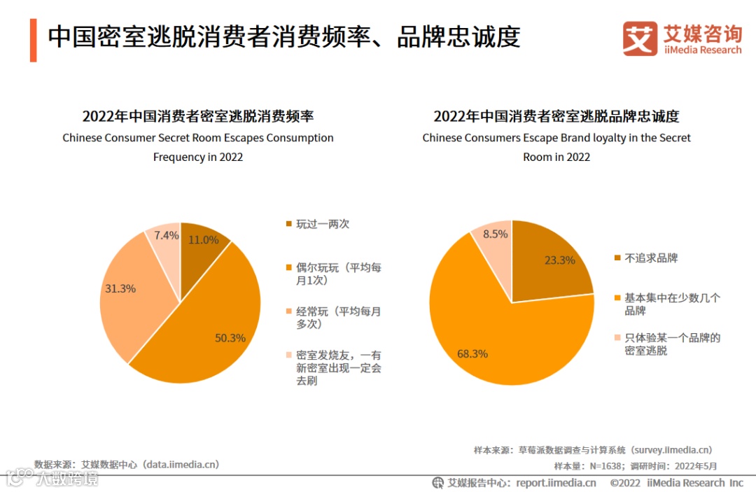 艾媒咨询分析师认为,消费者去密室逃脱的频率有所提高且注重品牌,打造独特的密室逃脱场景并加以推广,有利于提高消费者对品牌的忠诚度以及消费频率。