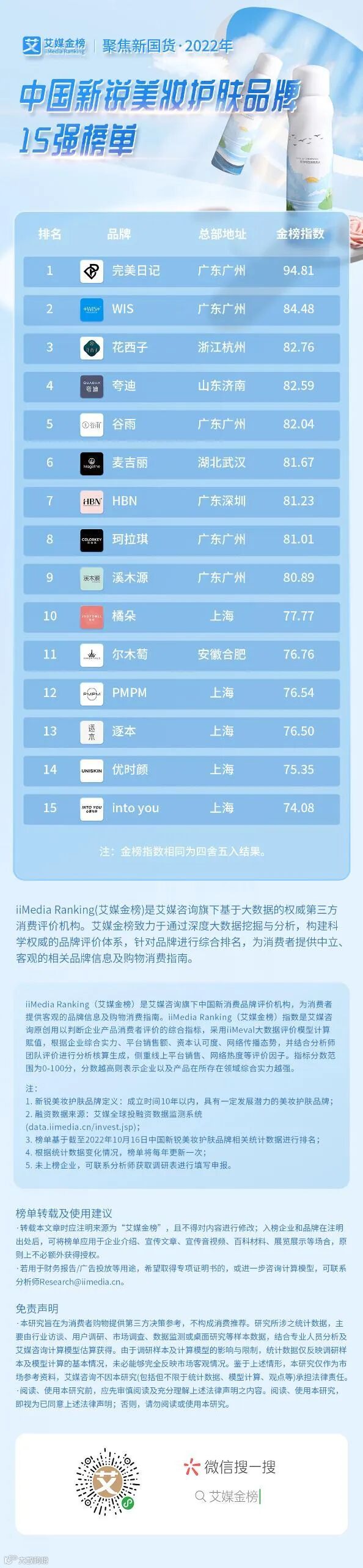 艾媒金榜 |2022年中国新锐美妆护肤品牌15强榜单出炉,哪个品牌你囤货最多?