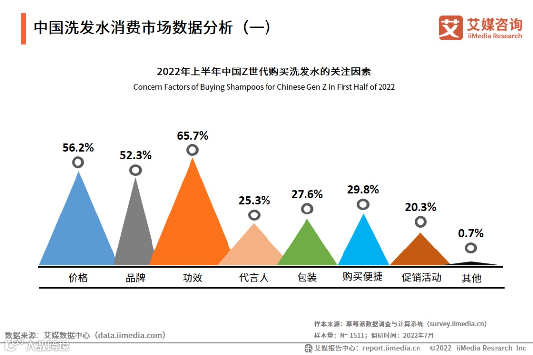 图表16 2022年上半年中国Z世代购买洗发水的关注因素