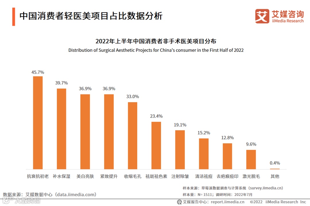 图表59 2022年上半年中国消费者非手术医美项目分布