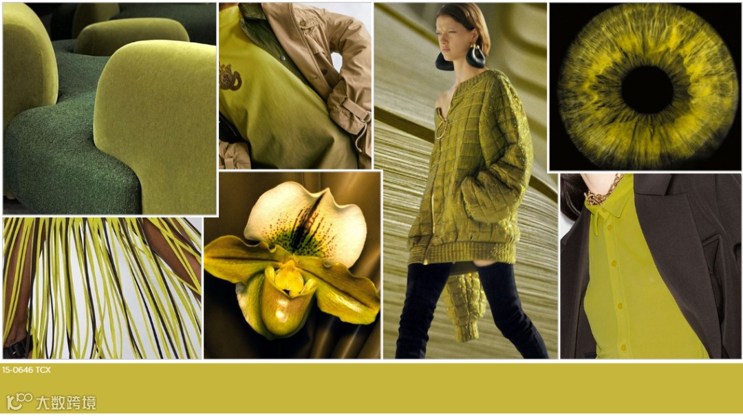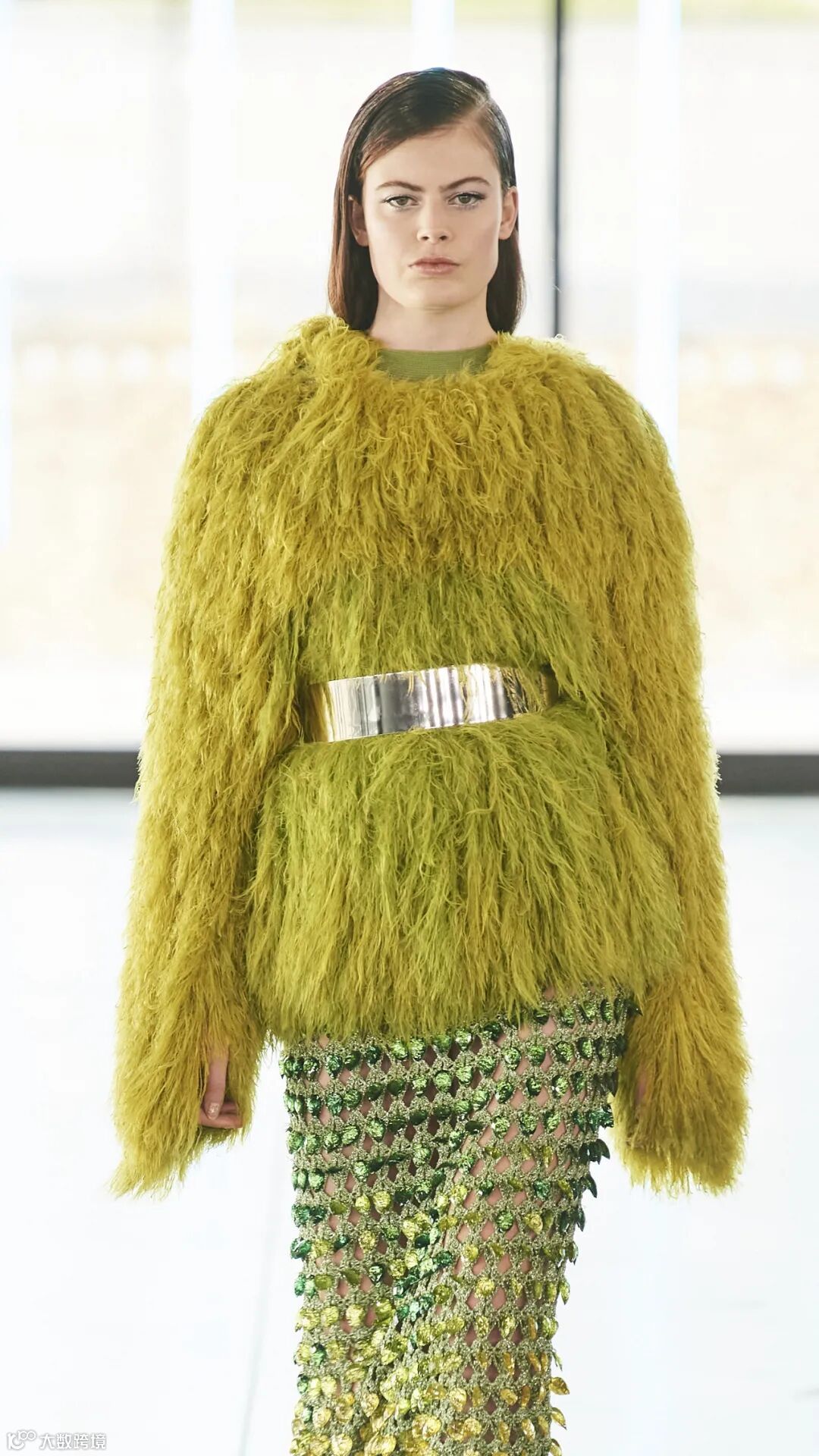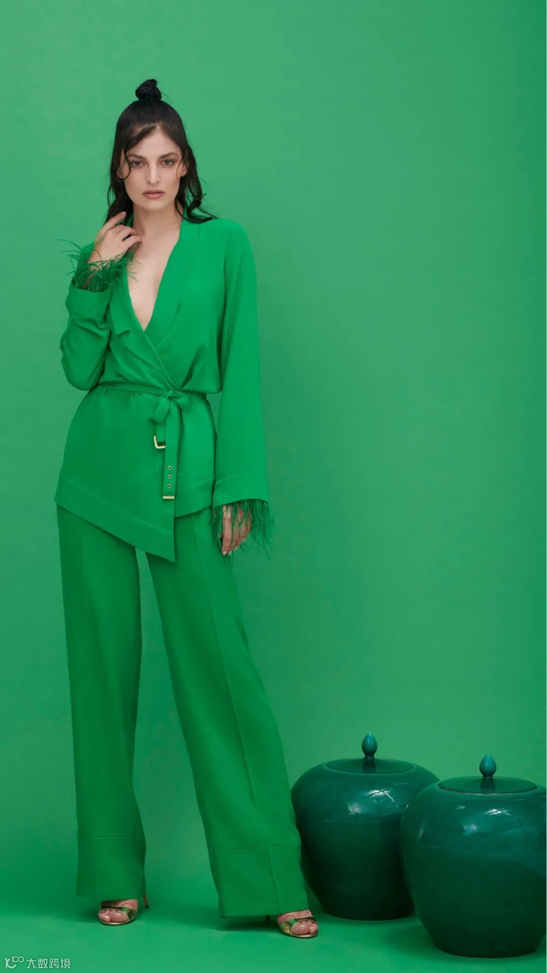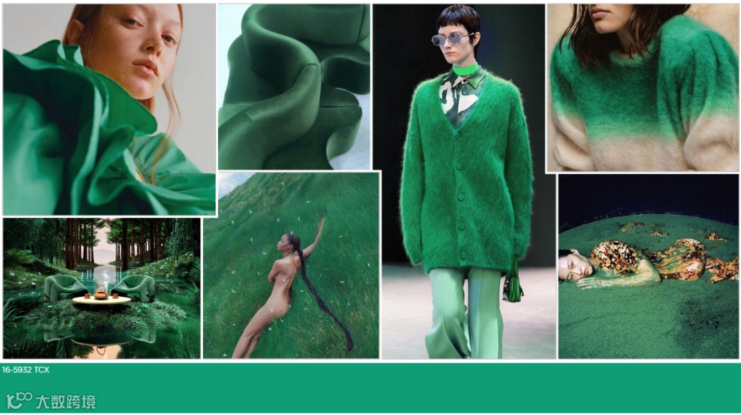 生态绿:随着促进与自然联系的亲生物设计的兴起,绿色以更加充满活力的色调出现,体现了自然的原始,同时也带来了一种科学的好奇心。生态绿色是秋季时装秀上的一个关键颜色,它既体现了亮色的重要性,又增添了意想不到的色彩。可广泛用于从毛绒毛衣到大衣和晚装。