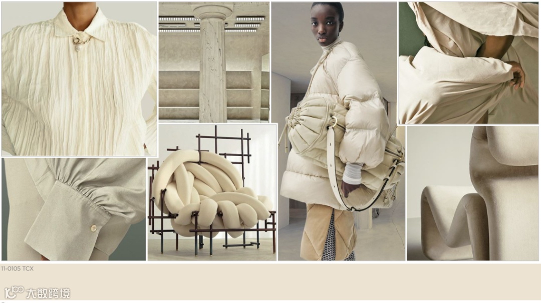 古董白:持续盛行的运动时尚风向无害化生产工艺的趋势转变推动了白棉和原纺织品的发展趋势。古董白是冬季必备的中性色,比传统的冬季白色更显深邃。从舒适的角度来看,古董白用于有纹理的面料和绗缝材料都很受欢迎,用于粗大的针织品的设计上也是很流行的。外套,下装,衬衫,针织品等新季单品的设计都可以使用古董白色。