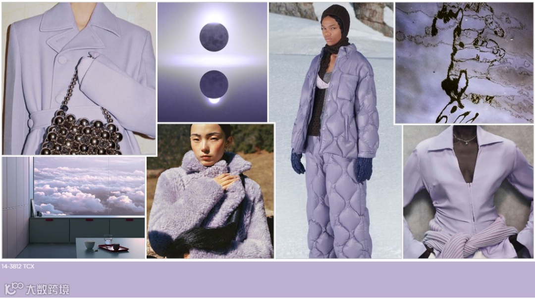 丁香紫:这种舒缓的颜色代表感官幸福,并连接到幸福的理想,继续在即将到来的季节盛行。丁香紫色是个柔和中立的色彩,提供了一种方式来蘸色,而不是压倒性的。适用于从结构化的机织设计和柔软的丝质纤维以及绗缝尼龙和高绒皮草的产品。是个充满活力的色彩给设计一个沉稳的外观。尤其是用于外套、西装、衬衫的设计。