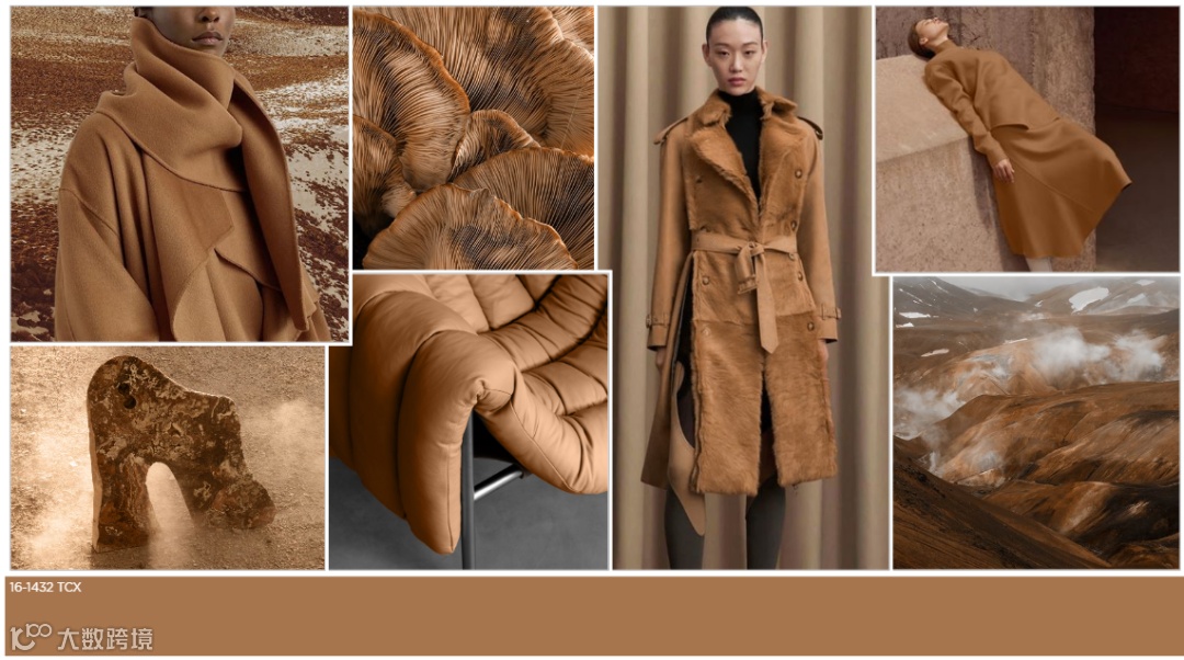 杏仁色:2022/23秋冬女装流行色向温暖的中性色转变是显而易见的,我们倾向于永恒的颜色,杏仁色让人感觉既熟悉又舒适。定位为新的驼色,是冬季最适合的卡其布色调比卡其色颜色更深,更饱和的颜色,给人一种保护感。杏仁色适用于高绒面革和羊毛面料,也适用于高档皮革和绒面革。广泛用于外套、针织品、毛衣、裤子的设计中。