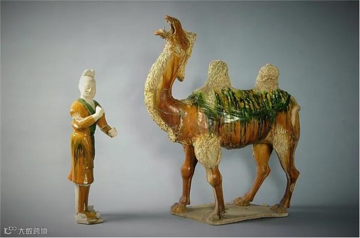唐三彩骆驼与牵驼胡俑