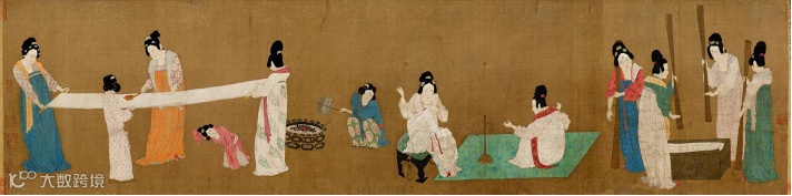 表现出贵族妇女捣练缝衣的工作场面。