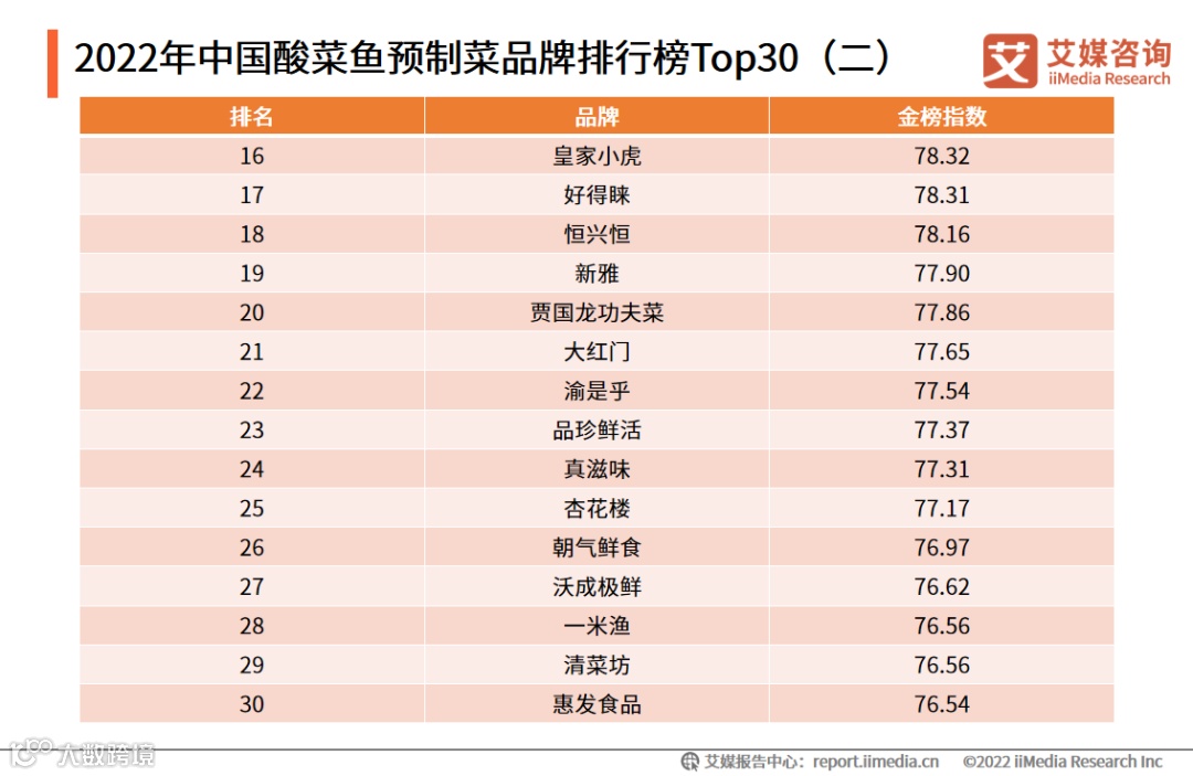 4.2022年中国酸菜鱼预制菜品牌排行榜Top30(二)
