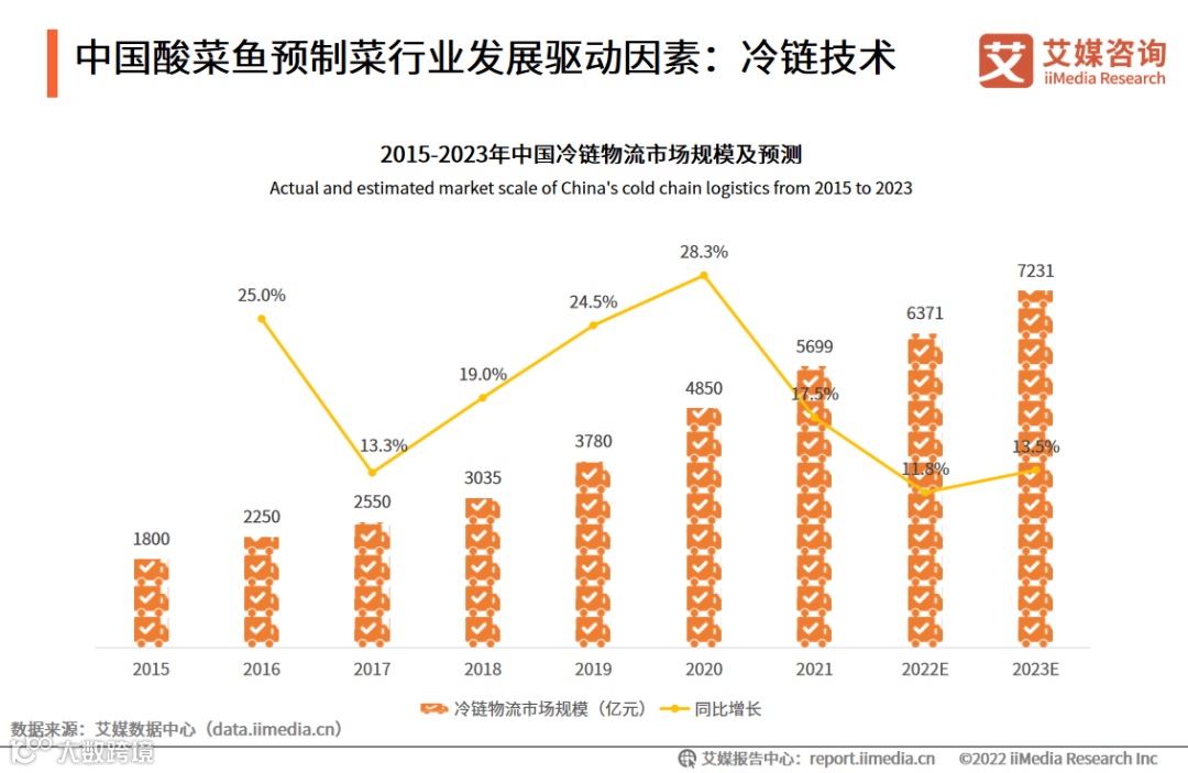 艾媒咨询分析师认为,冷链物流保障了酸菜鱼预制菜品的新鲜度,中国冷链物流的市场规模将不断扩大,有助于酸菜鱼预制菜行业业务拓展。