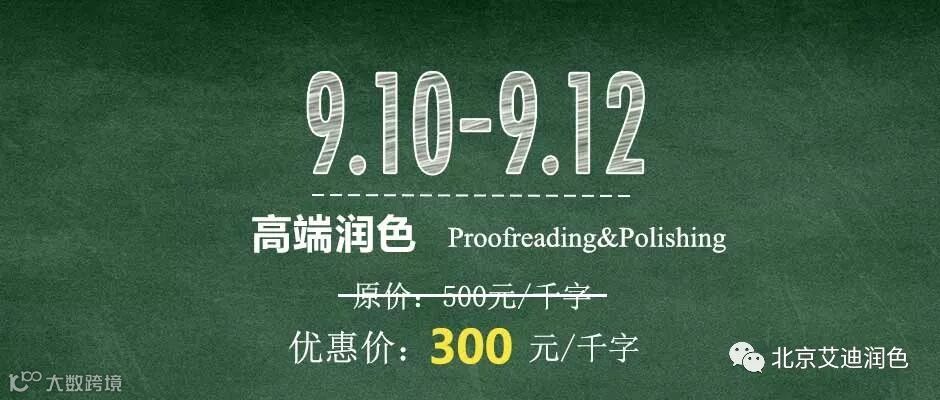 活动内容:高端润色6折优惠,原价500元/千字,活动期间300元/千字