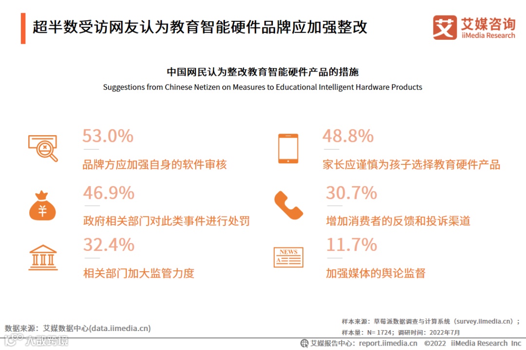 超半数受访网友认为教育智能硬件品牌应加强整改