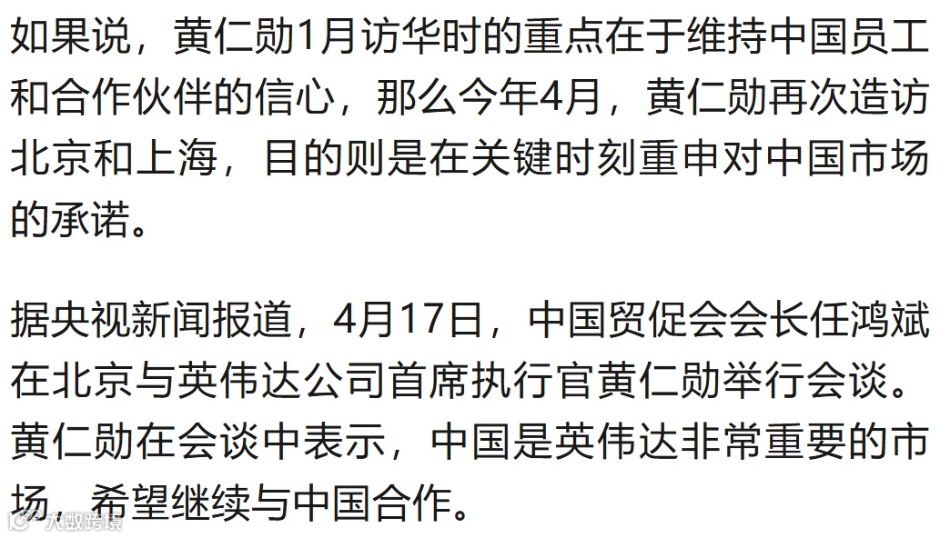 今年以来,围绕不同的主题,黄仁勋已两次到访中国大陆。