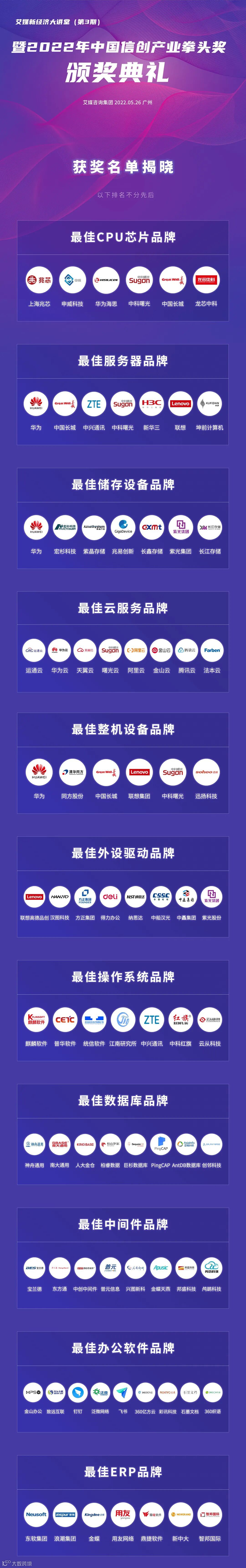 5月26日,由iiMedia Research(艾媒咨询)主办的“艾媒新经济大讲堂(第3期)暨2022年中国信创产业拳头奖颁奖典礼”以线上+线下的形式在广州成功举办。