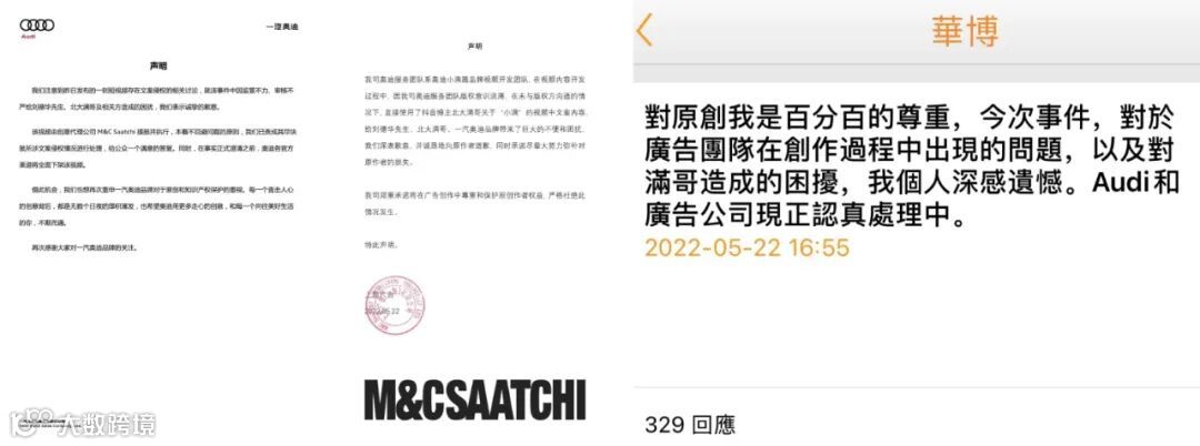 再观这次的奥迪广告抄袭事件,除了反映出对内容创作保护的重要性外,还反映出另一个问题,那就是对内容审核的监管力度有待提高。奥迪的广告是外包创作的,就算公司不负有“创意抄袭”之责,也必须对“把关不严”负责。