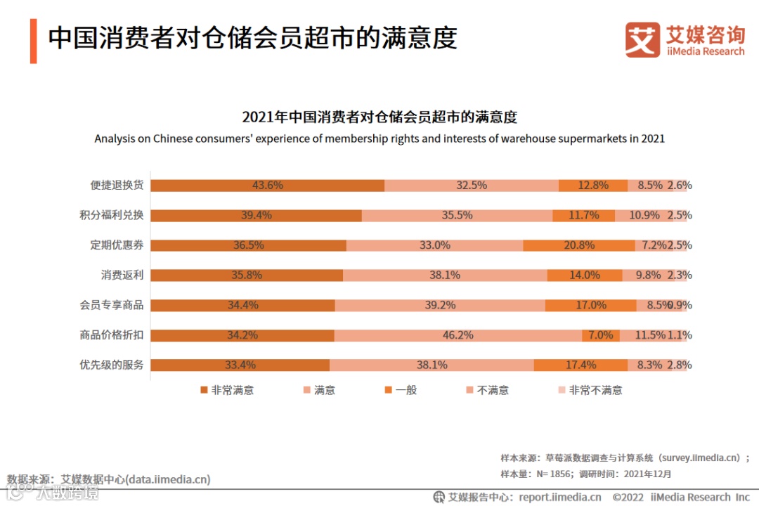 调研数据显示,中国消费者对仓储会员超市的各项服务的满意度均高于70%。