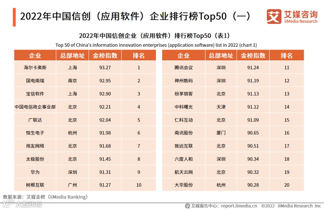 10.2022年中国信创(应用软件)企业排行榜Top50(二)