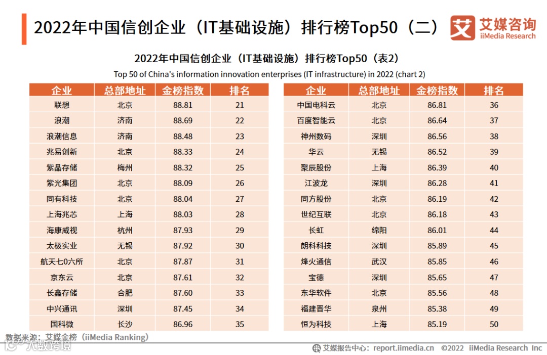 2022年中国信创企业(IT基础设施)排行榜Top50(二)
