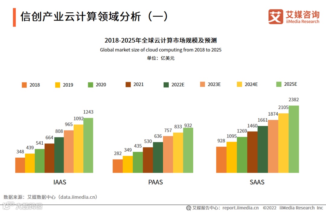 数据显示,2021年全球云计算市场规模为2654亿美元,预计2022年达3105亿美元。