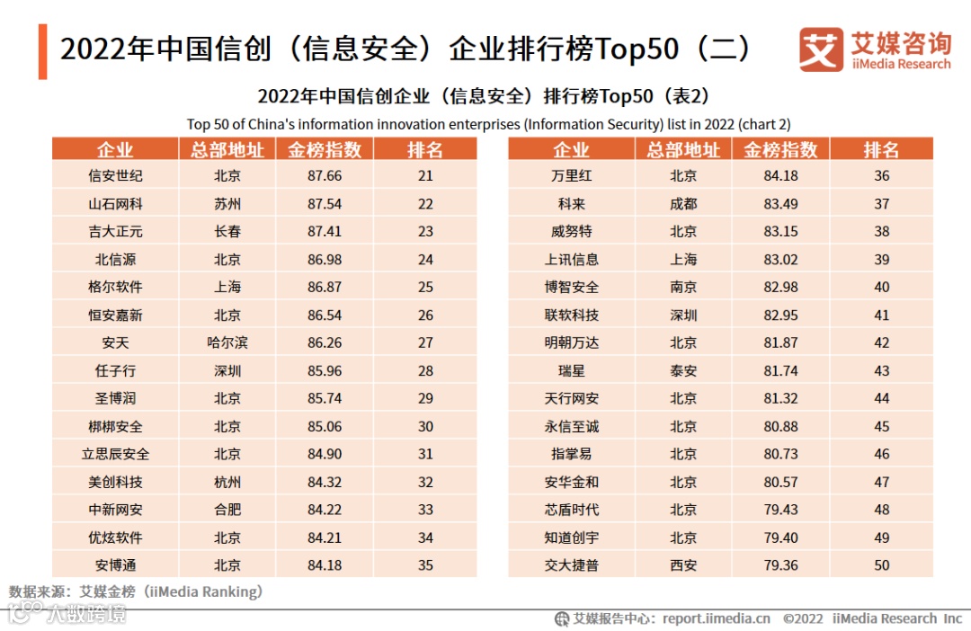 2022年中国信创(信息安全)企业排行榜Top50(二)