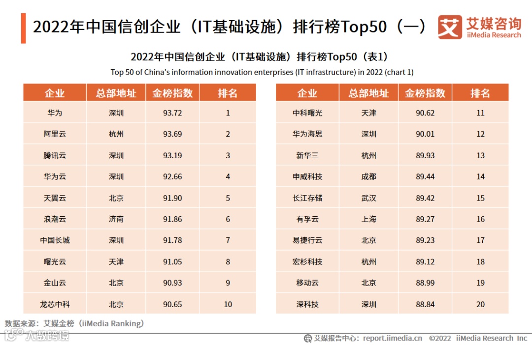 2022年中国信创企业(IT基础设施)排行榜Top50(一)