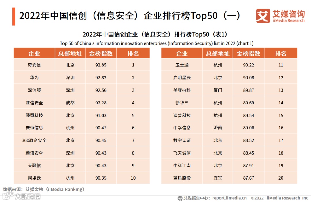 11.2022年中国信创(信息安全)企业排行榜Top50(一)
