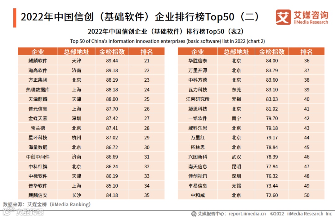 2022年中国信创(基础软件)企业排行榜Top50(二)