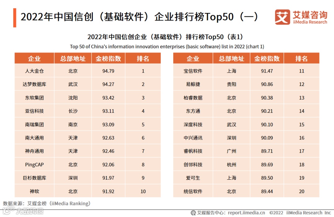 2022年中国信创(基础软件)企业排行榜Top50(一)