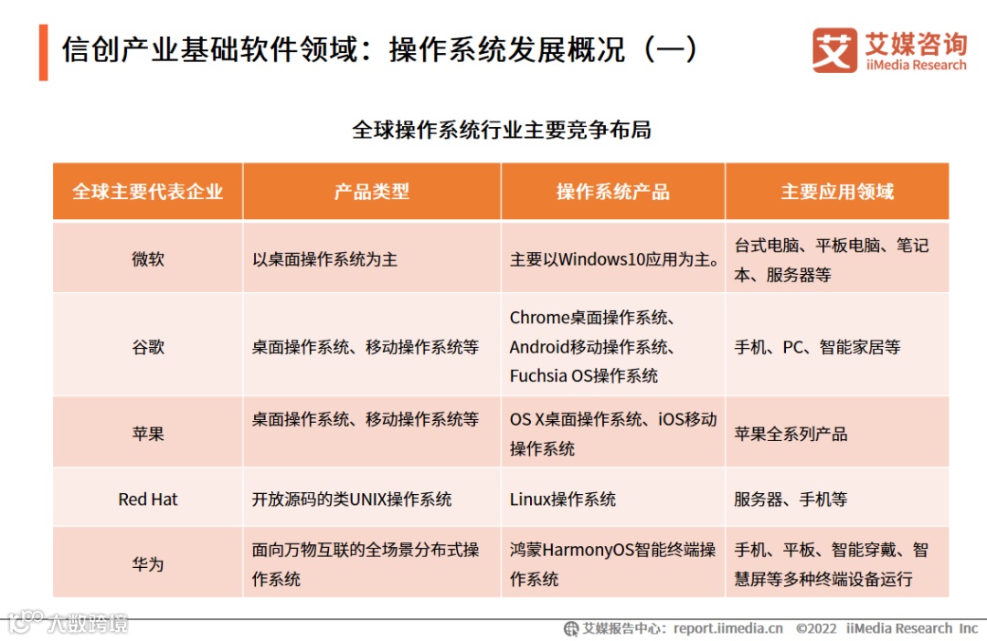 在全球操作系统市场中,长久以来是由美国的谷歌、微软两大企业占据主要市场份额。与CPU领域相似,操作系统领域的国产化比率同样相对较小。