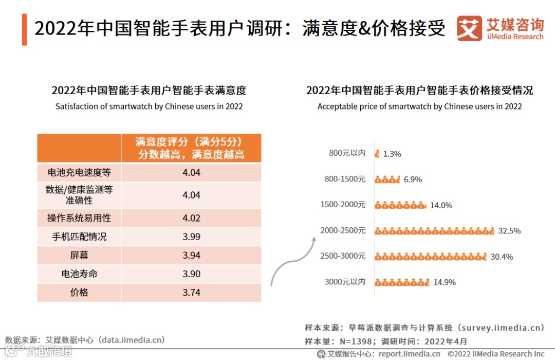 5.2022年中国智能手表用户调研:满意度&价格接受