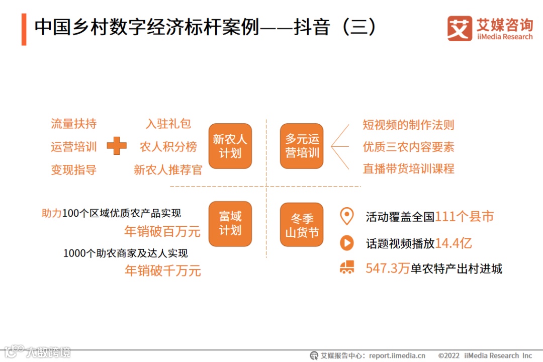 特别提示:《艾媒咨询|2022年中国乡村数字经济发展专题研究报告》完整高清PDF版共45页,公众号后台回复 43183 获取报告下载链接!