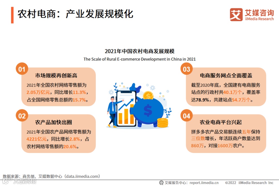 艾媒咨询分析师认为,随着农村电子商务体系和快递物流配送体系加快贯通,以及内容电商、直播电商等模式不断创新落地,农村电商呈现高速发展的态势。