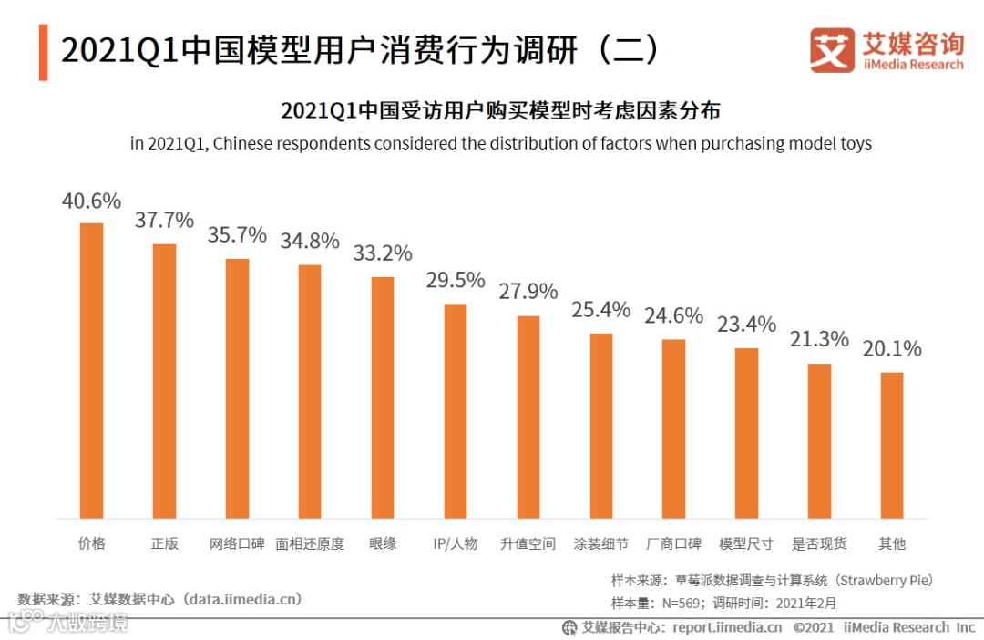 艾媒咨询分析师认为,模型成本包括IP授权费用、设计、开模、生产等成本,而且对设计师的工业设计要求比较高,所以产品售价较高,因而模型用户在选购产品时,不仅仅考虑个人对模型的喜欢程度,更要考虑产品的价格。