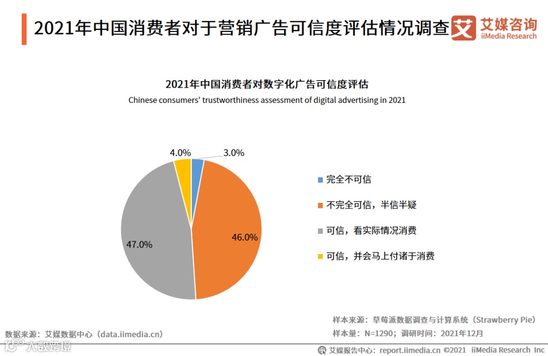 4. 2021年中国消费者对于营销广告可信度评估情况调查