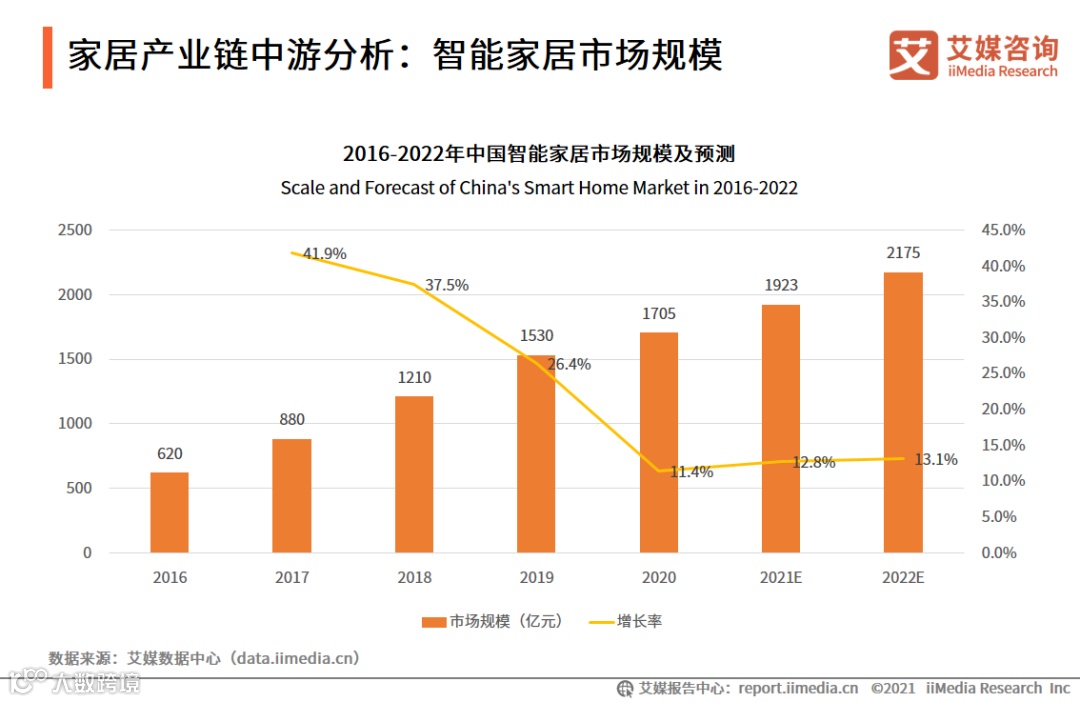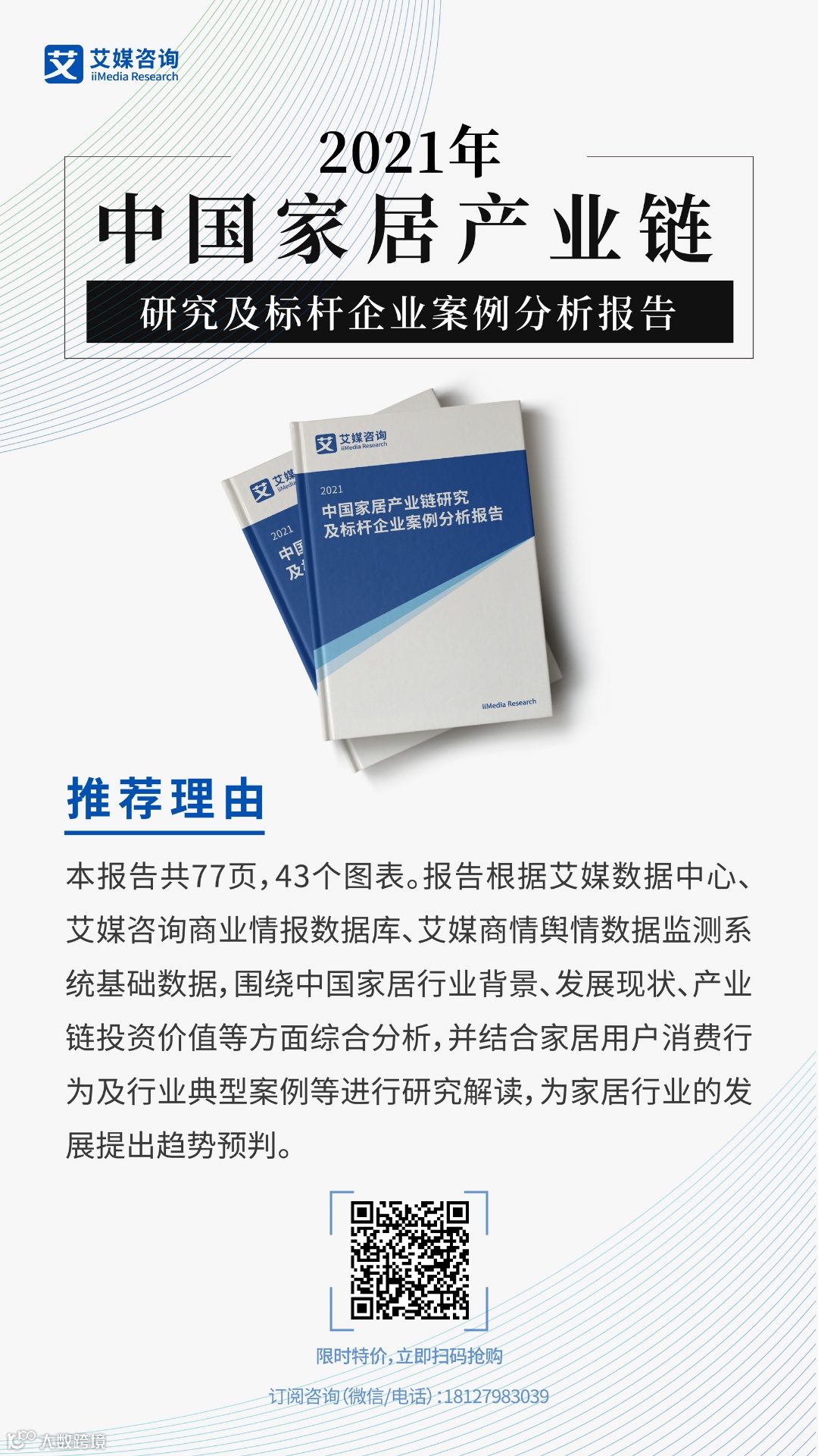 为了更好地研究家居产业链现状及行业前景,iiMedia Research(艾媒咨询)发布了《2021年中国家居产业链研究及标杆企业案例分析报告》,围绕国内外家居市场发展概况、背景进行详细分析,并着重对家居产业链投资价值深度剖析,结合家居行业标杆企业案例,对家居行业发展趋势进行预判。