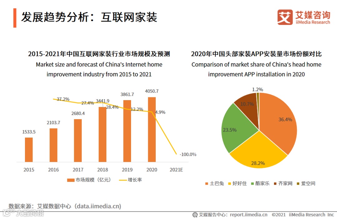 图表41. 2015-2021年中国互联网家装行业市场规模及预测